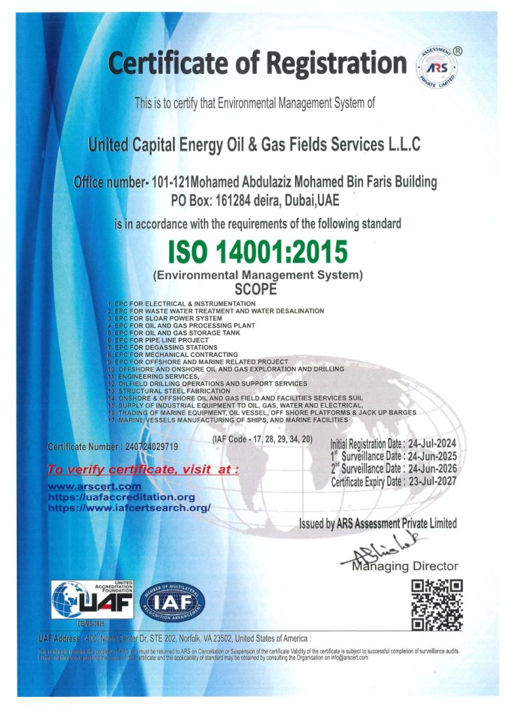 United Capital Energy Oil and Gas Fields Services LLC is a prominent company in the UAE’s oil and gas sector, known for its role as an EPC (Engineering, Procurement, and Construction) contractor.